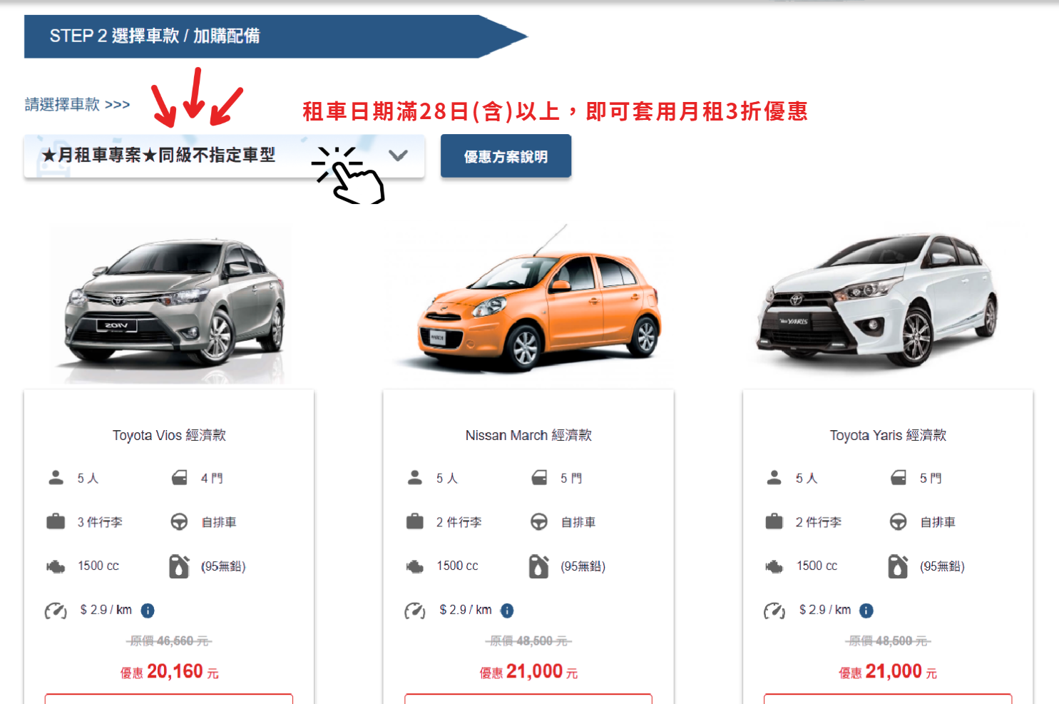 凡單次承租滿28日(含)以上,即自動適用月租專案,可享原價3折超值優惠。